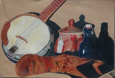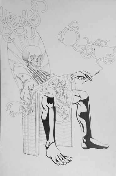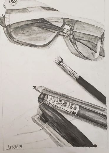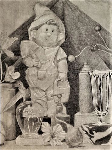 Uncomfortable World is a study into the way things seem so mundane and “normal” for the average person while for anxious individuals like myself, struggle can be immense to be comfortable in the most “normal” of situations. By removing familiar color and creating a space that reads as 2D, I hope to bring others into my view of the world, discomforting and unusual. The colors (or lack thereof) are a fun play on the phrase “everything is in black and white”, typically taken to mean that things are plain and simple, which for social things, very rarely seems to be the case for me. This is the fourth piece I have done in this color scheme, each one pertaining to various things I use in my life to make things easier, a black sewing machine with glowing lights to signify the void I get lost in to forget the present and focus on making gifts to make other happy in the future, a light in the shape of a base and treble clef to recall the music that brings short bursts of light to the struggle, and a ladder made of redacted text that shares the writings that kept me alive for so long.