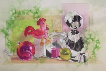 Wood, Acrylic Paint, Memory Foam, Cotton Fabric, Lamp, Paper